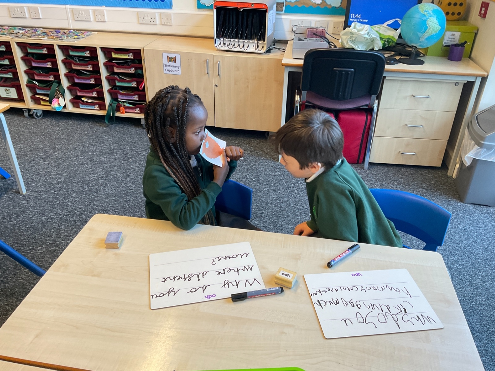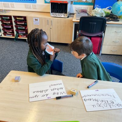 In preparation for Dougal (the deep-sea diver) visiting,  we took it in turns to ask each other questions. One of us would pretend to answer like the real Dougal and then we would swap over.