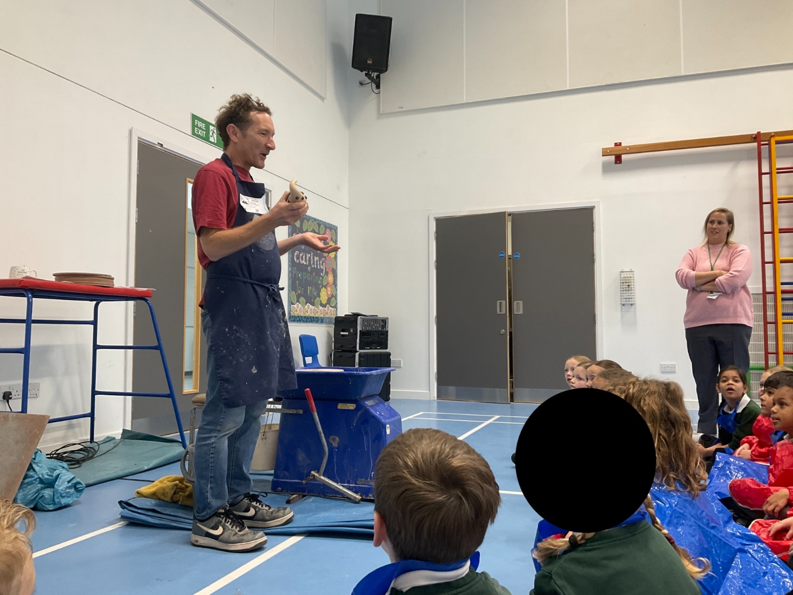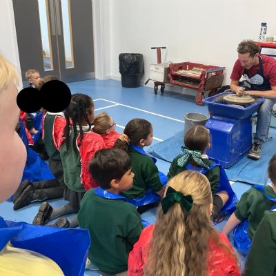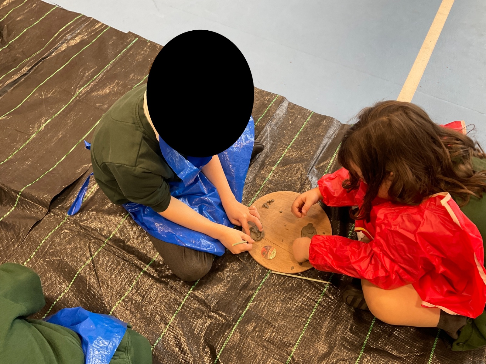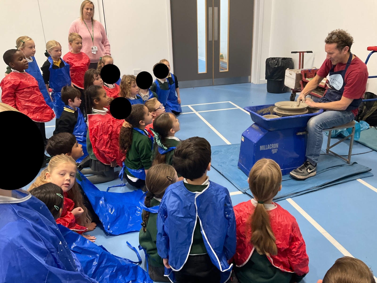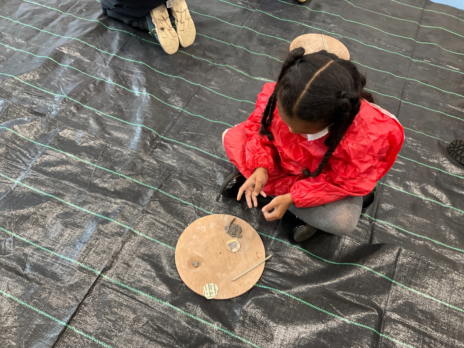 In Arts week we were visited by Jon the Potter. He helped us to make a class plate. We each had to create our own faces out of clay.