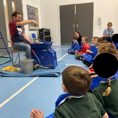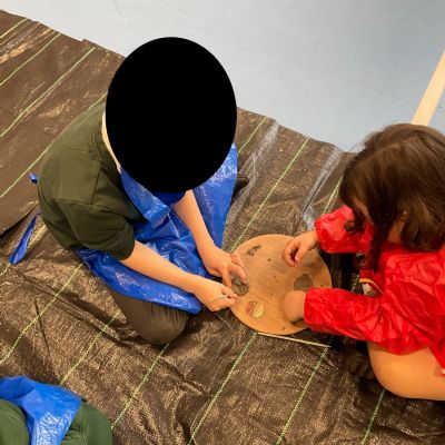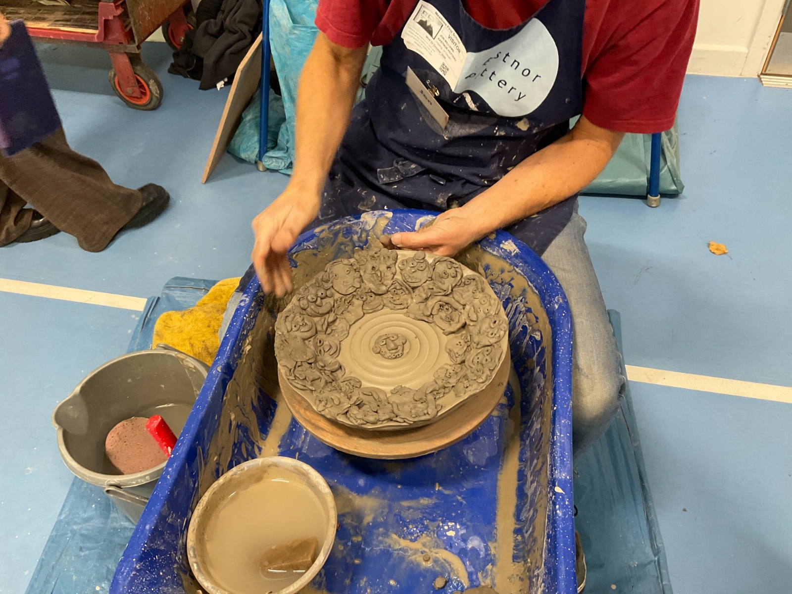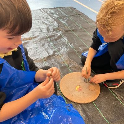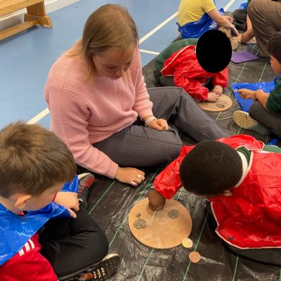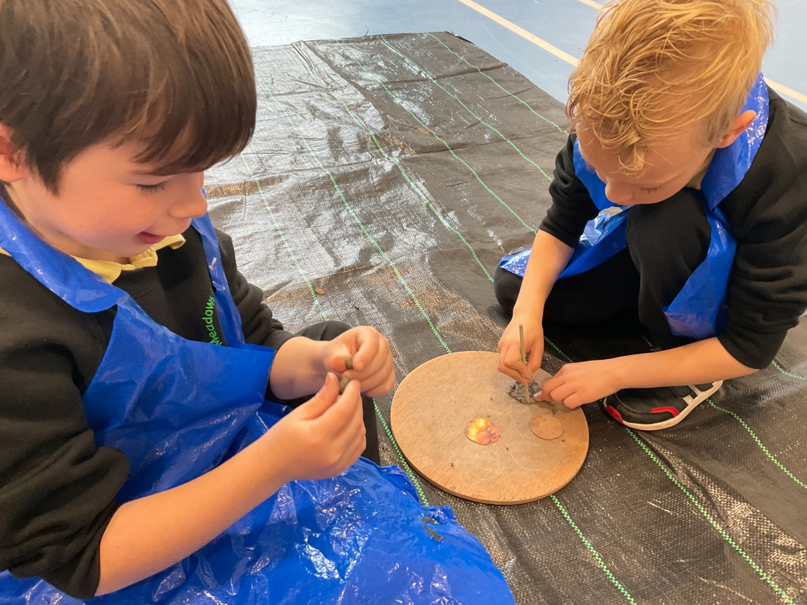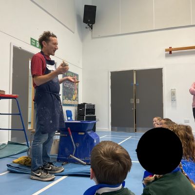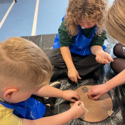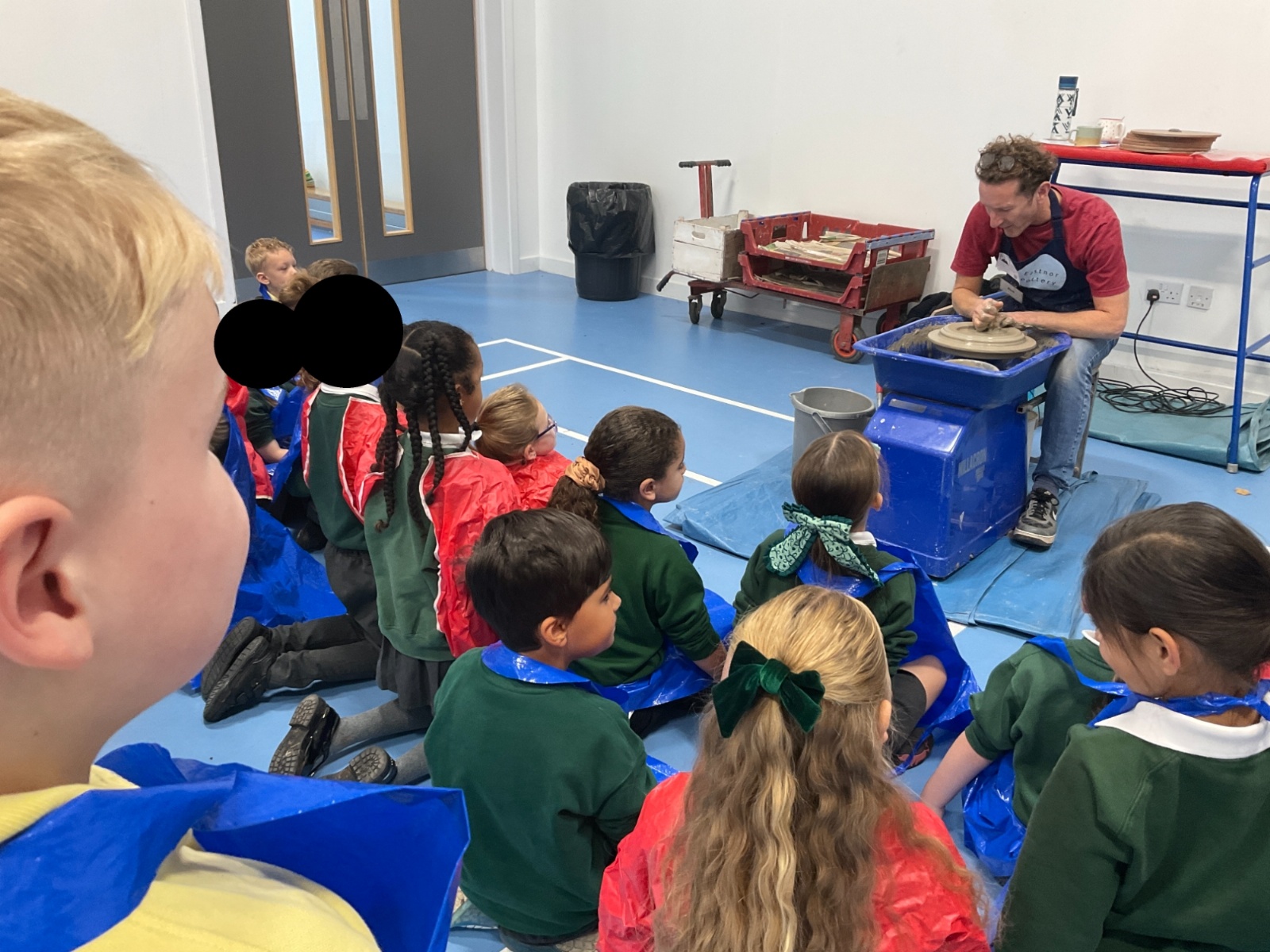 In Arts week we were visited by Jon the Potter. He helped us to make a class plate. We each had to create our own faces out of clay.