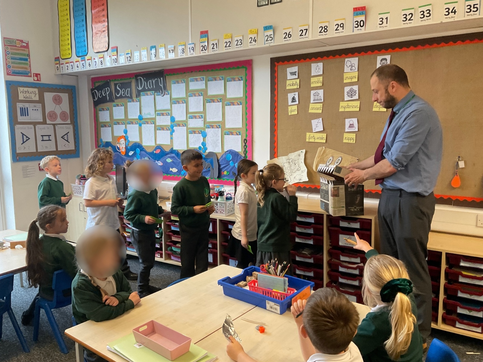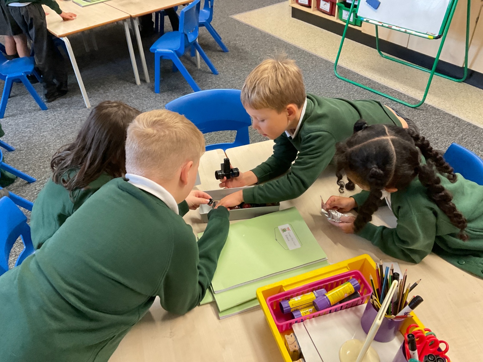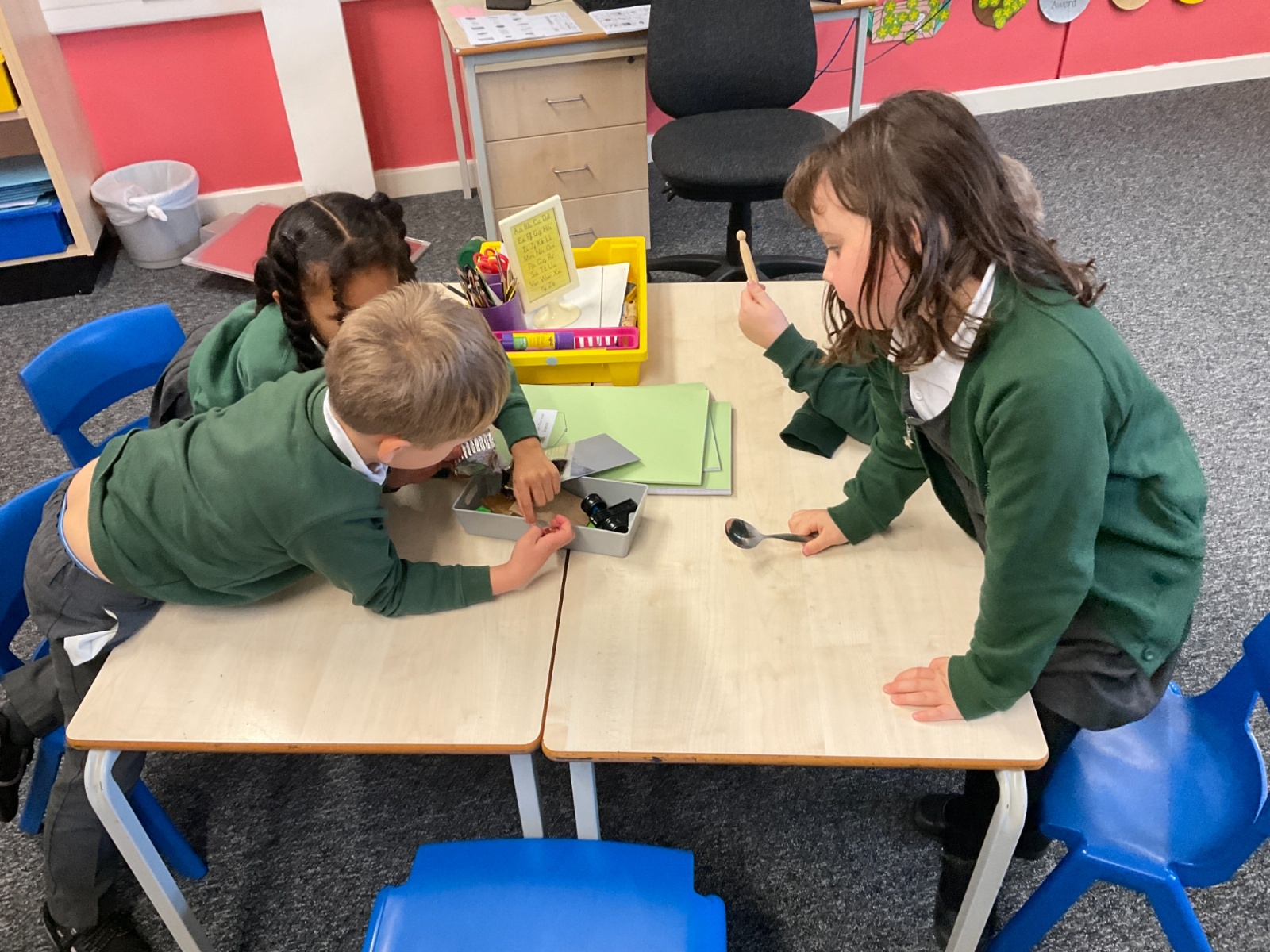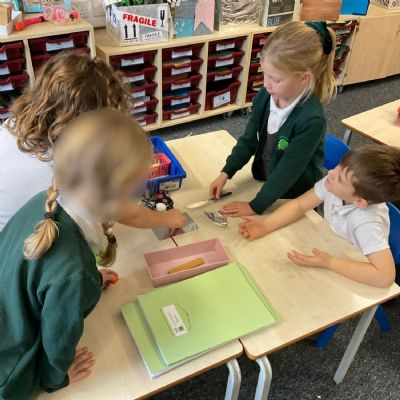 We were given lots of different items made from different materials. We then had to feed them to the right material muncher depending on what they were made from.