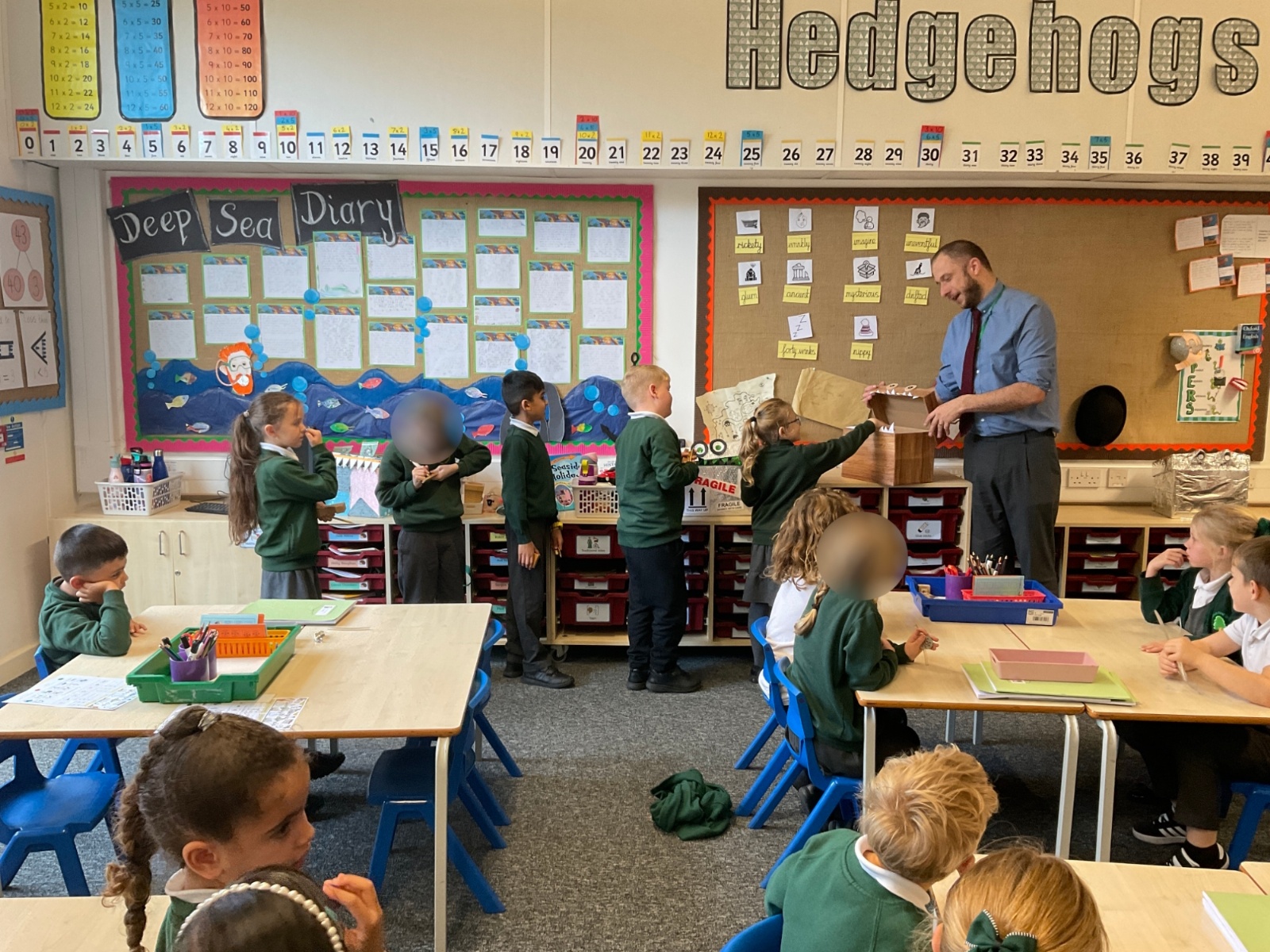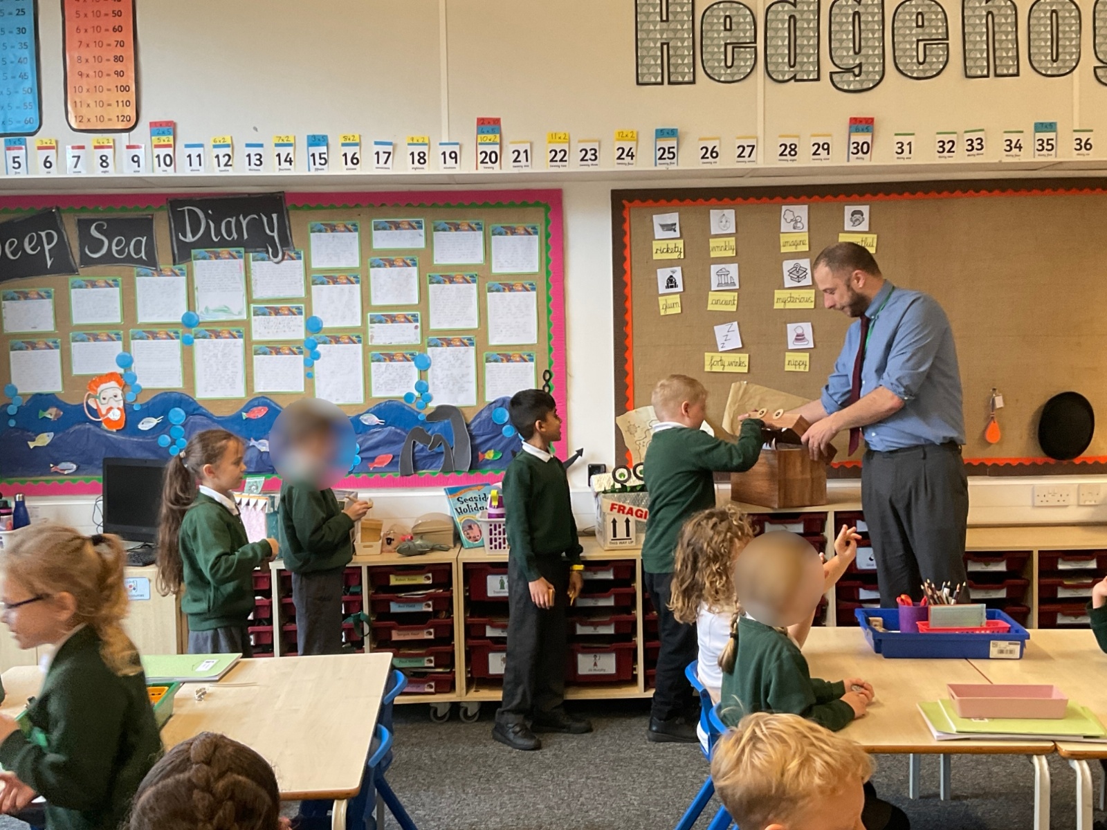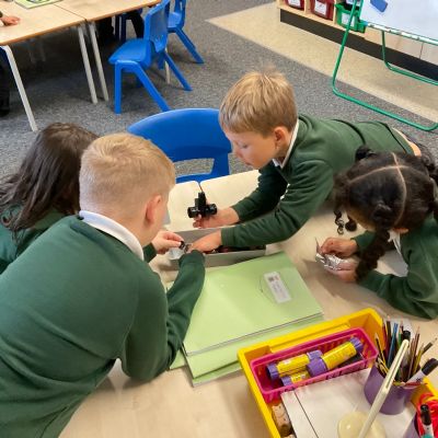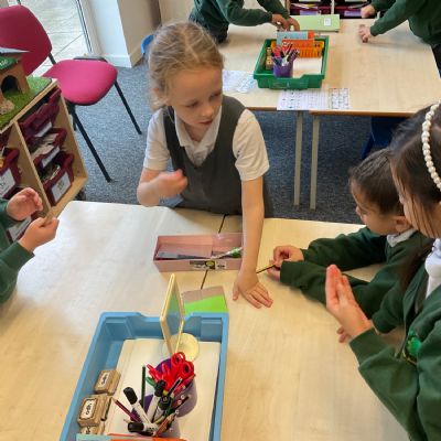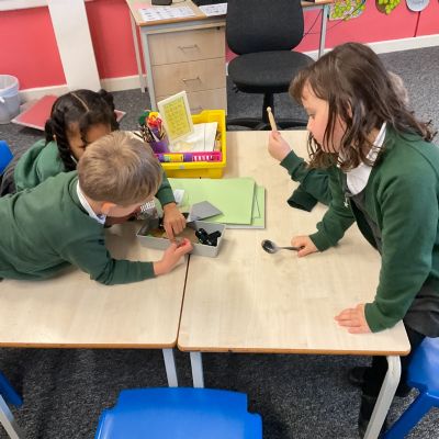 We were given lots of different items made from different materials. We then had to feed them to the right material muncher depending on what they were made from.