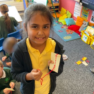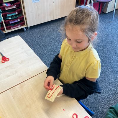 We practised using a running-stitch in our DT, ready for when we make our bookmarks next lesson.
