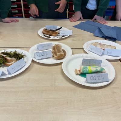 In English, we used lots of new adjectives to describe some pretty disgusting-looking sandwiches.