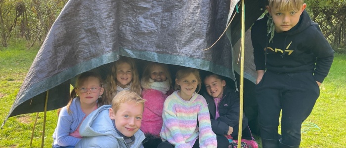 They had amazing weather and really loved the day, working to light fire with flint and steel, weaving natural fibres and making shelters in the woods.
